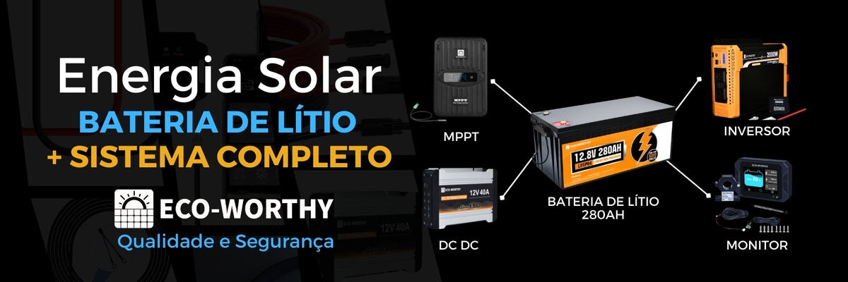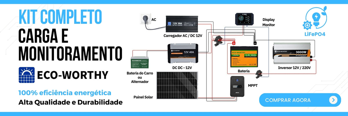 Ajudamos você a montar o seu projeto com Bateria de lítio, carregador DCDC, inversor de energia, MPPT e Display digital para monitoramento e gerenciamento de carga.